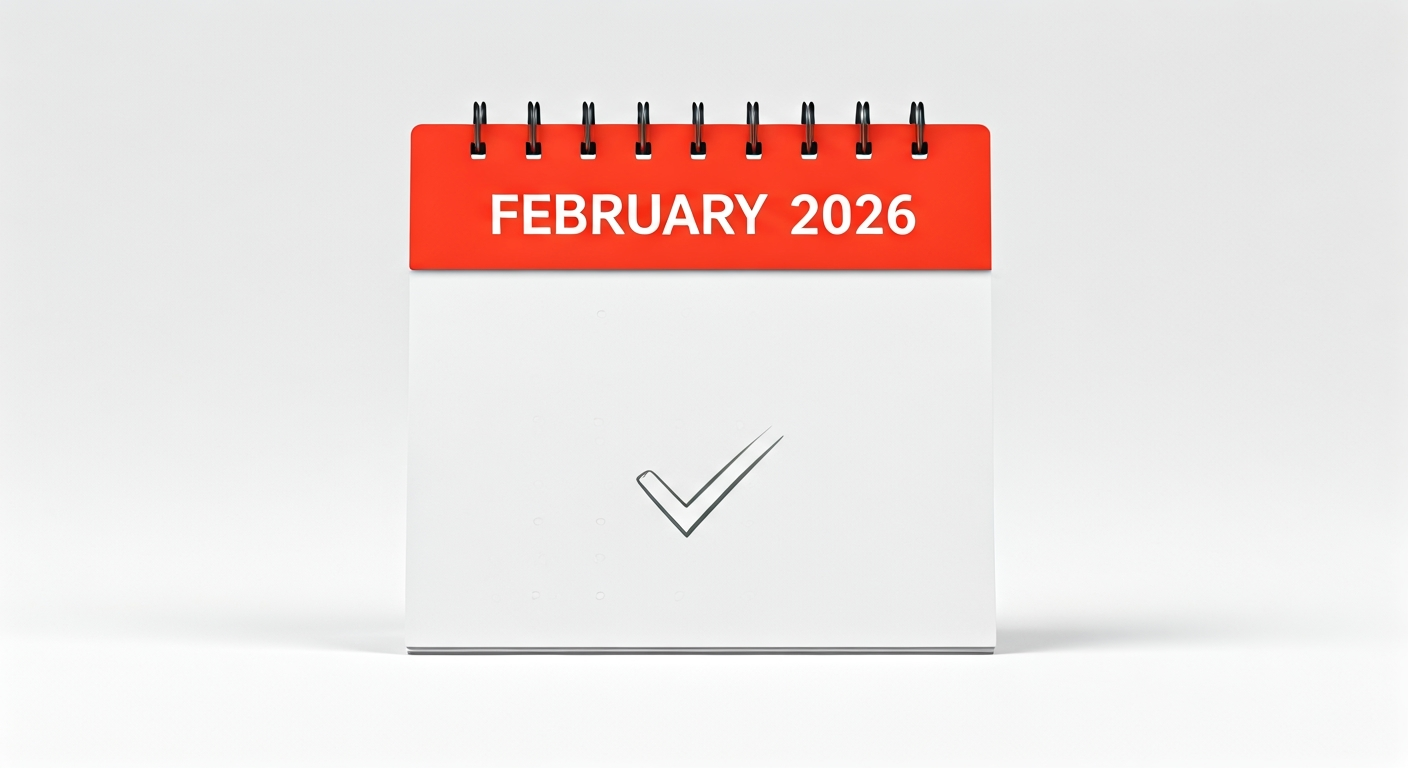 ▲ 2026년 2월 25일에 체크 표시가 된 달력, USP 완료 기한을 상징합니다.